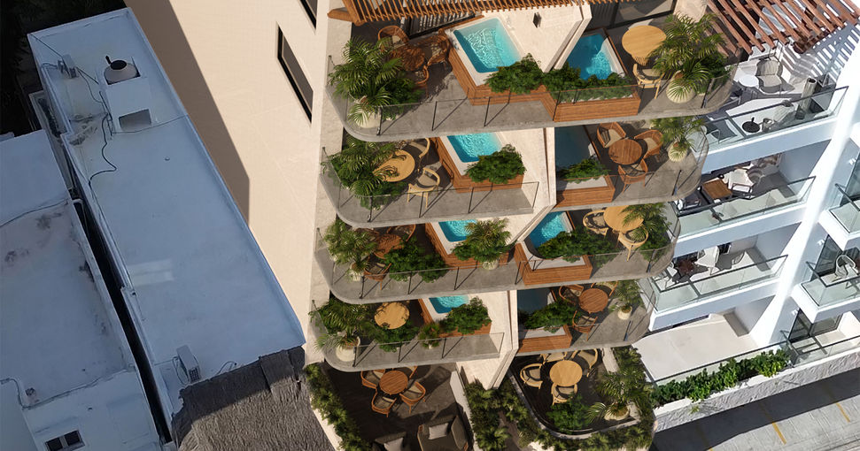 Perfectly Positioned on the most important Avenue in the Center of Puerto Morelos, in a Strategic Location overlooking the Sea and only a few minutes’ walk from the Commercial and Restaurant Areas.