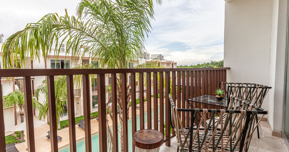 Each apartment is inspired by a Mediterranean Boho Design with a combination of woods, light walls, Mayan stone and Catalan flagstones.